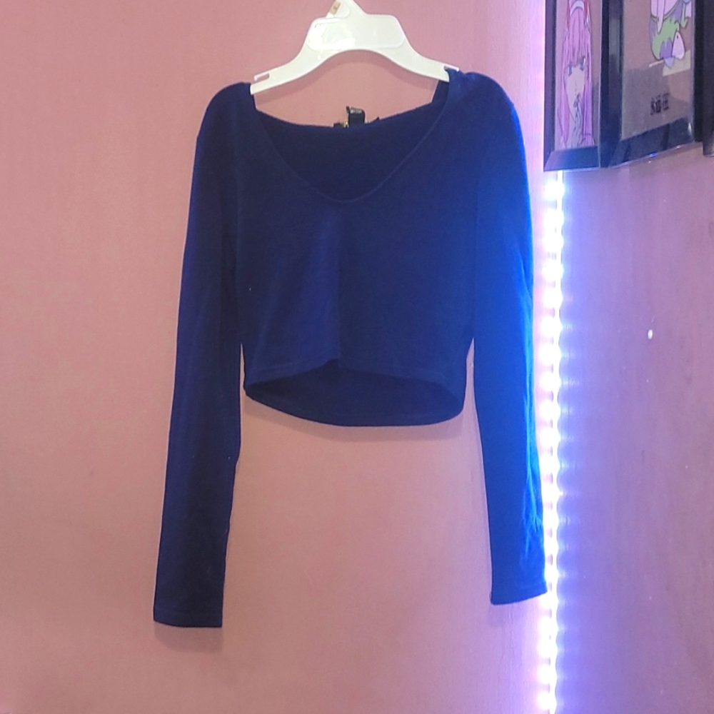 Blue hooded long sleeve crop top, worn once, crazy comfortable and warm.
