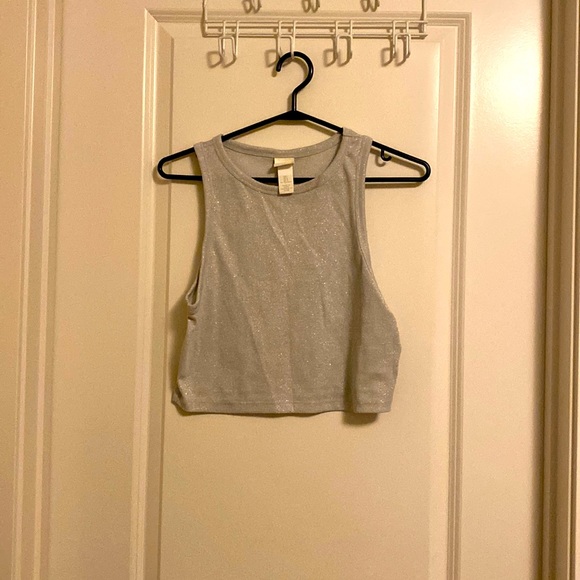 Size large crop top. Shinny, nice for going out to party or wearing under a blazer or jacket for work.