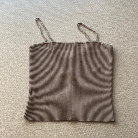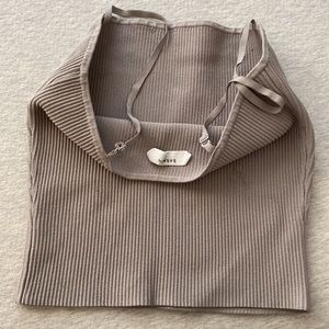 Babaton gray ribbed crop top, slight stain/ discolouration depending on which side you look at it. But hardly noticeable