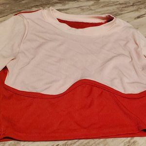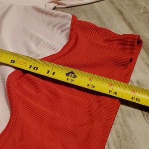 Sexy red & white track suit. Long sleeve crop top with leggings, ribbed material, EUC.