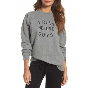 *Cropped* BRUNETTE The Label Fries Before Guys Sweater – Light Grey