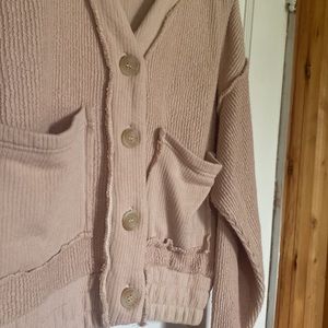 Cropped Button-Up Sweater- baggy/oversized style, elastic bottom with pockets.
