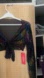 Black mesh cropped top with colorful sequins and front-knot detail.