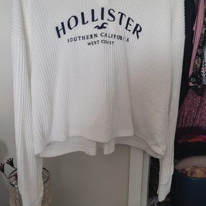 Lightweight cropped Hollister hoodie white with black lettering and is also ribbed fabric. It's very comfortable and in excellent condition. Only worn a handful of times! Size XL but fits smaller, more like a Lrg