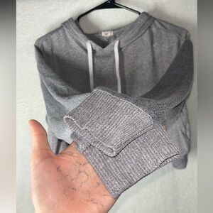 This gray cropped hoodie from Garage offers a relaxed fit with long sleeves, perfect for a casual day out. The attached hood and contrasting white drawstring add a stylish touch to this comfortable top. Made from a soft, cotton-like fabric, it ensures both comfort and style.