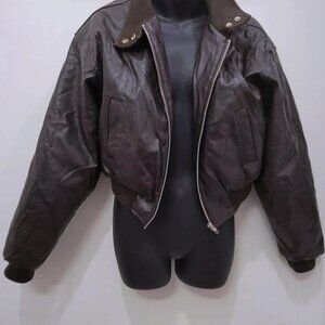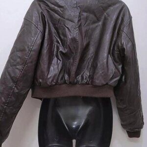 Cropped Leather Brown Sherpa Fleece Winter Jacket