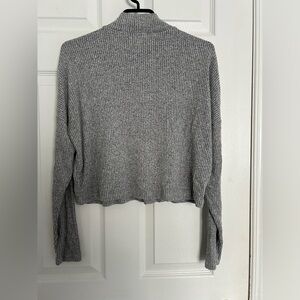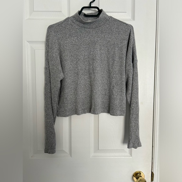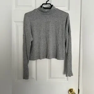 Grey ribbed cropped mock turtleneck. Salt and pepper colouring, soft and stretchy fabric.