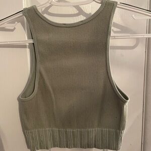 Size xs/s! Sage green ribbed & cropped tank top with cute detailing on the bottom!