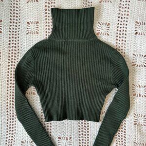 Cropped Turtleneck Ribbed Knit Sweater Top