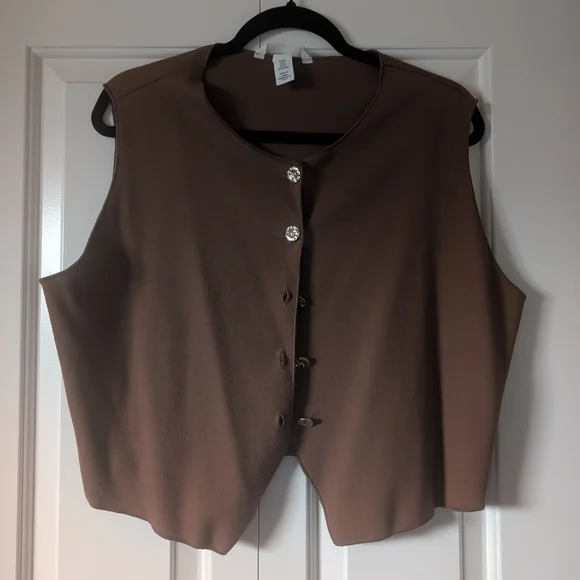 Brown vest from H&M, gold button up, cropped length. size XL