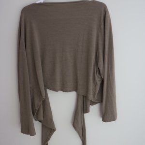Cropped cover up, 3/4 length sleeve. Can be tied up at front.