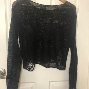 Divide H&M, Small, Black, cotton blend, sheer, distressed, crop