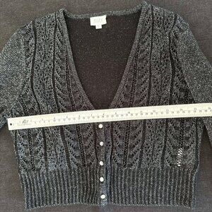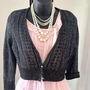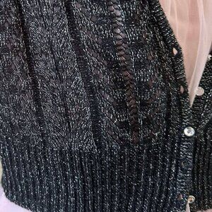 Cropped black acrylic knit jacket with silver lurex threads – size M.