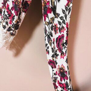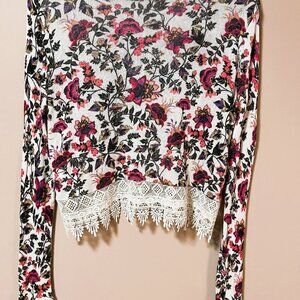 Cropped lace edged Autumn colours lightweight stretch sweater Sz M-L VGUC