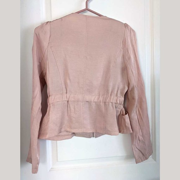Patel pink, satiny cropped length jacket, purchased and made in Korea. Would be good for spring or summer.