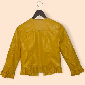 Cropped ruffle faux leather jacket. The faux leather is of good quality