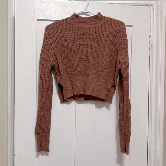 Cropped mock neck knit sweater