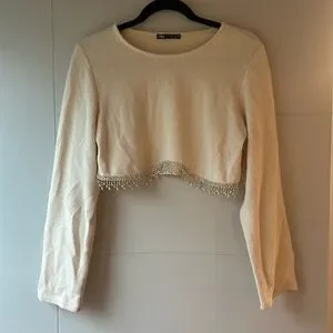Cute cropped top Zara Long sleeve Cream color with silver charms details