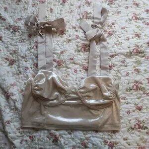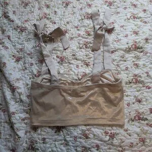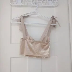Never worn. Velvet cropped top with bow ties. Oatmeal color