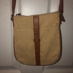 Cross body bag with fake leather straps.