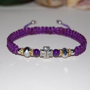 Cross Bracelet,6mm Stone and Glass Beads,Friendship Bracelet,Good Wishes Gift