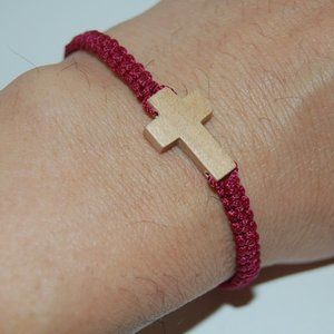 Cross Bracelet,Drawstring Bracelet,Cross String Bracelet,Wood Cross Bracelet