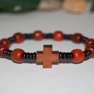 Cross Bracelet,Wood Bracelet,Cross Wood Bracelet,Rosary Bracelet,Wood Rosary Bracelet