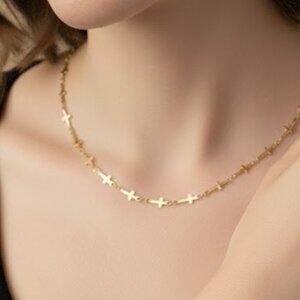 Cross Chain Stainless Steel Necklace Gold Plated Stainless Steel Handmade