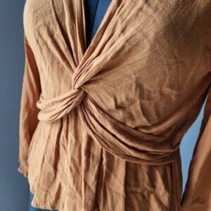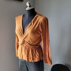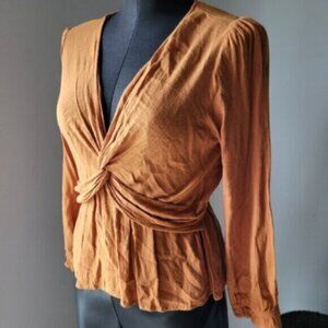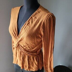 one Clothing Peplum Blouse with Cross over Front knot and puff sleeves & elastic waist