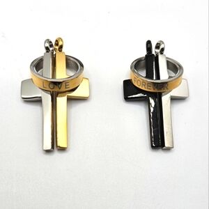 Cross LOVE Pendant Gold Silver Plated Steel Unisex Couples