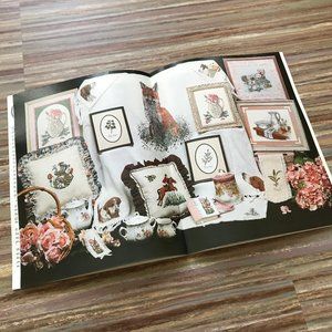 * Milady's Manor (1989) has 15 different designs to cross stitch, including a red fox, peacock, tea in the garden, vanity table, & more. 16 pages, 8 1/2" x 11". Soft cover has creasing/wear to edges.