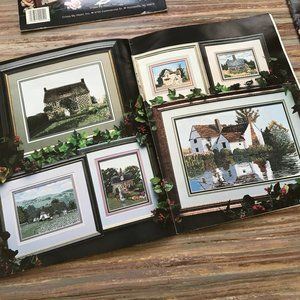 *English Country Cottages (1991) has 6 different cottage designs to cross stitch, finished designs are illustrated in color photos with full graph instructions. 8 1/2" x 11", 16 pages. Soft cover has heavy creasing/wear to edges.