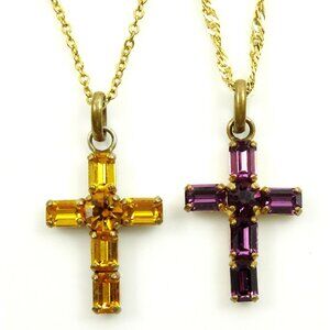 Cross Necklace Lot of 2 Necklaces Purple and Yellow Stone Religious Jewelry