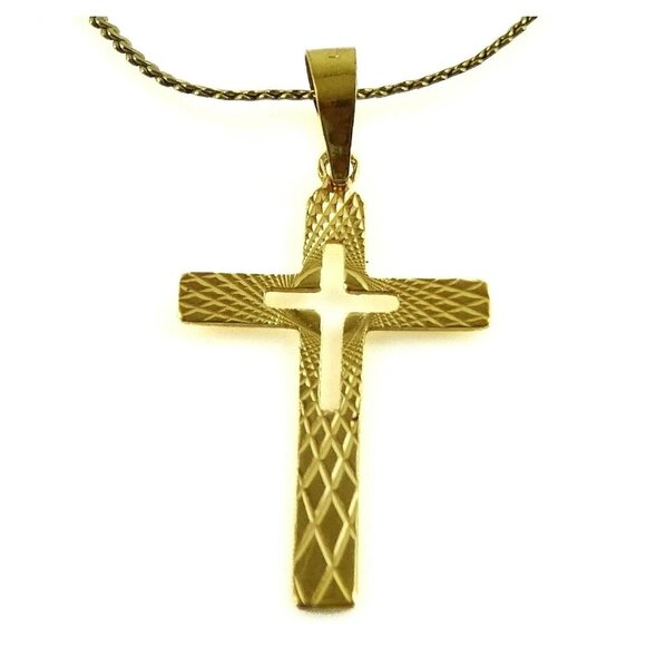 Cross Pendant Marked Condor on Added Chain Necklace Religious Jewelry