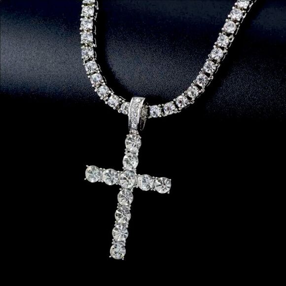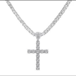 Cross Pendant Necklace with 4mm Tennis Chain Iced Necklace Jewelry Silver chain