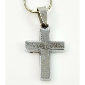Cross Pendant w Bosnian Our Father Necklace Religious Christian Catholic Jewelry