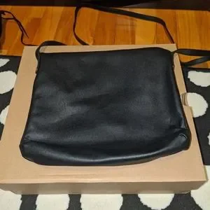 Black faux leather material crossbody with magnetic field over closure. Approx 10" x 11" when closed. Excellent condition. Smoke free, non shedding home. Please feel free to ask any questions!