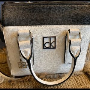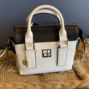 Crossbody Bag by Calvin Klein - this small crossbody bag features an adjustable crossbody strap, dual carry handles, a top snap closure, a logo print and multiple pockets.