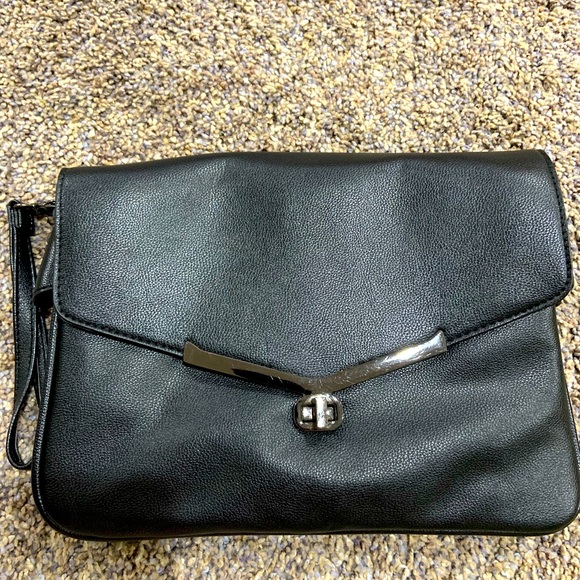 Black crossbody bag almost new only use once the turn lock is showing some damage due to its turning but the whole bag still in very good shape and condition. With two compartments removable strap and bag can use as a clutch bag
