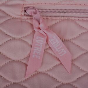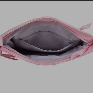 Brand new without tags Cotton pink quilted Zipper pockets on each side Inner zipper pocket Ajustable strap with padded shoulder attachment Fits 10.5 laptop/tablet 11 x 11.5 inches x 2 inches wide at bottom Strap 52 inches long