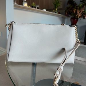 Crossbody purse color cream with multiple pockets on inside