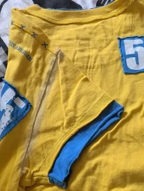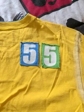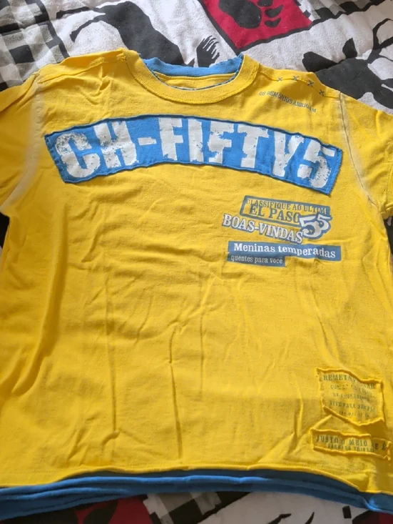 Crosshatch fifty 5 double t shirt vintage detail printed and patched details front and back , early 2000's