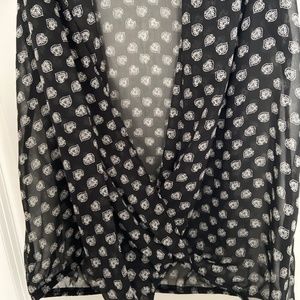 Never worn cross over sleeveless blouse Size large 100% polyester
