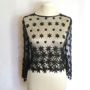 Crochet floral lace cropped top. Color: Black. SIZE: M (armpit to armpit measures 17.25") . Features: