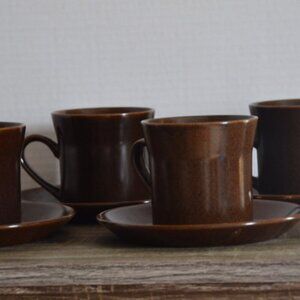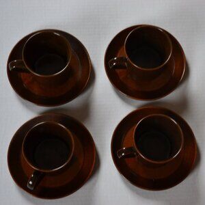 Set of four Crown Lynn cups and saucers. Made in New Zealand.