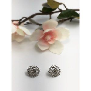 Lovely pair of Crown Trifari Silver Tone Clip On Earrings. Textured surface. Measures 1" in length by almost an inch in width at widest point. Clip Back , functions well. Vintage from the 1960's. In excellent condition. No returns or exchanges.