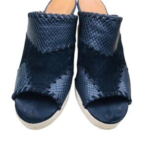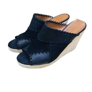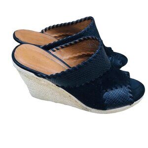 Crown Vintage Black Wedge Espadrille open toe Sandals Women size 9M