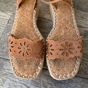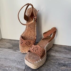 Crown Vintage Fentisa Leather and Espadrille Platform Tan Wedge Sandals size 8