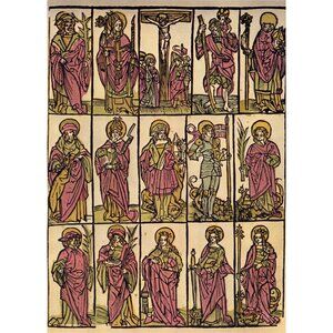 Crucifixion and Fourteen Auxiliary Saints-Print on White Mat-Printed in Japan