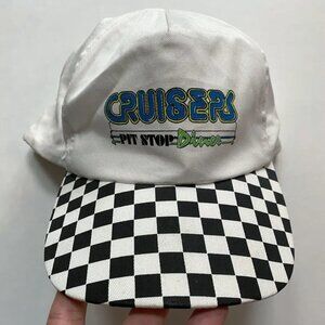 Cruisers Pit Stop Diner Hat 90s Boomer Cap with Checkered Brim – Adult Snapback